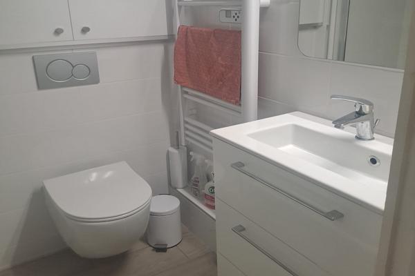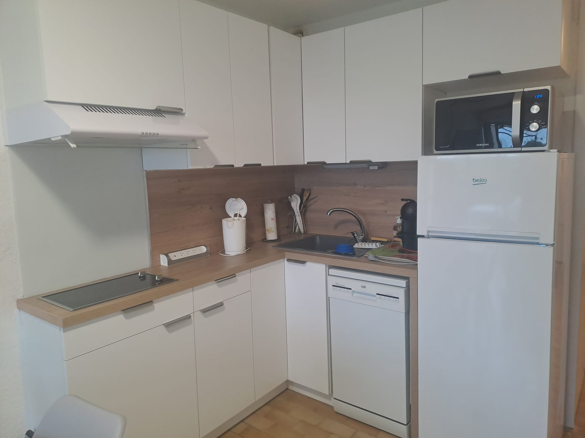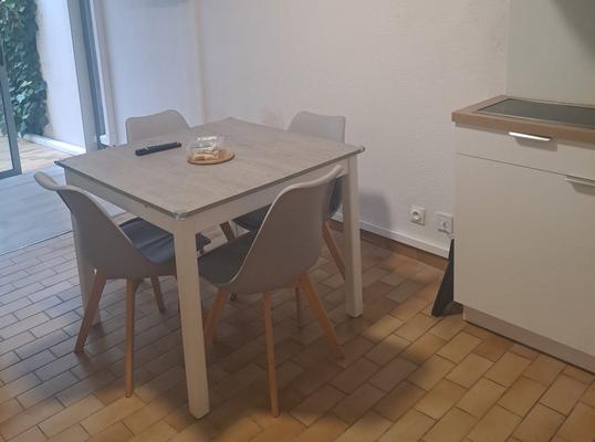 Studio 4 personnes, cuisine équipée, salle de bain entièrement neuve, alcôve avec 2 lits superposés, une cour fermée arborée.